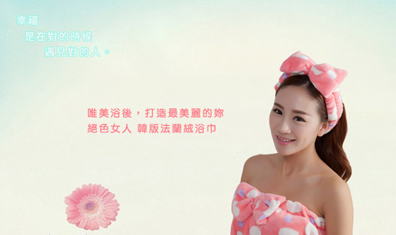 環保法蘭絨面料,柔軟、細膩、色澤鮮亮,健康衛生,雙面絨不易縮水、不易掉毛、不起靜電、不易起毛球,吸濕效果超強,且吸濕後不貼身,舒爽透氣,春夏秋冬都可穿法蘭絨浴巾。