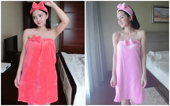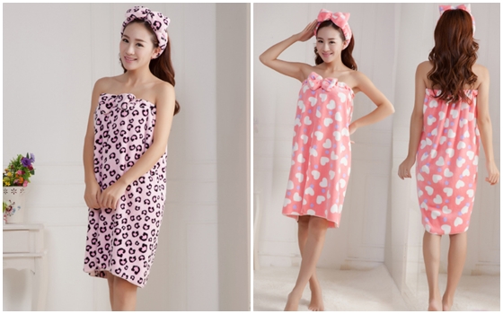 搭配小提示:沐浴過後穿上浴裙無需拭擦身上的水滴,浴裙接觸的地方水滴很快就乾了,真的很方便哦,還可以穿著浴裙睡覺呢。