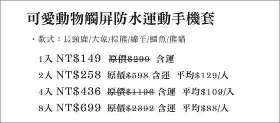 品名:可愛動物觸屏防水運動手機套(5.5吋以下通用)