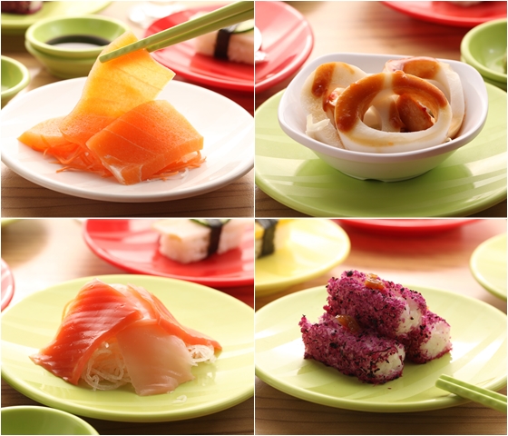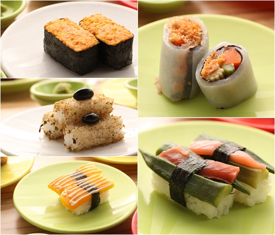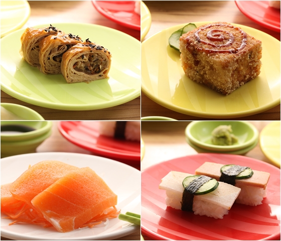●素食餐點的全新選擇,迴轉台上的餐點任挑任選,想吃什麼就吃什麼