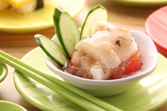 鮭魚/辣五味魷魚/雙色蒟蒻/紫蘇梅