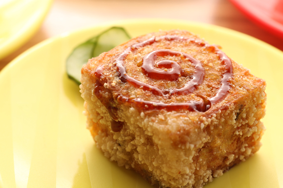 用豆漿製成,口感多了滑溜的細嫩,灑上芝麻,聞著撲鼻的香氣,令人食指大動。