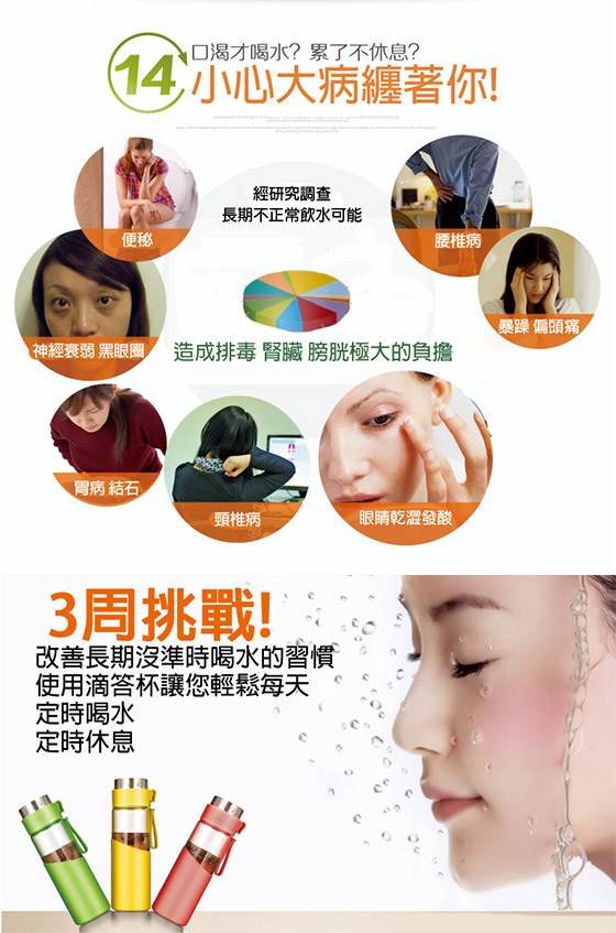 生活忙碌的你,總是忘記喝水、也忘了上洗手間,長期下來身體越顯越勞累,肌膚也跟著黯淡不已,把事情做完,卻失去了健康。