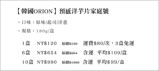 ●韓國洋芋知名大廠,【韓國ORION】出品,有口皆碑