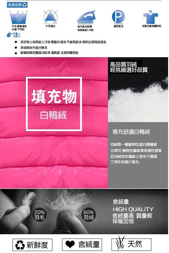 男女皆合穿的四款顏色,亮麗飽和又修身,精選優質鴨腹羽絨填充,小格設計鎖住羽絨不亂跑,輕盈蓬鬆能保住溫暖,穿上都像模特兒般時尚又美觀。