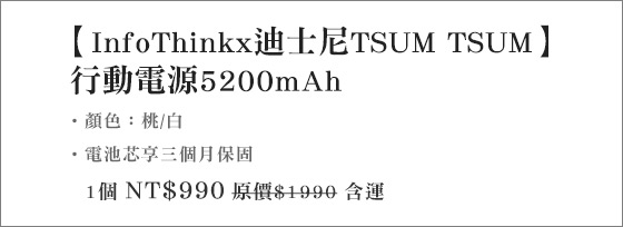 品名:【InfoThinkx迪士尼TSUM TSUM】行動電源5200mAh