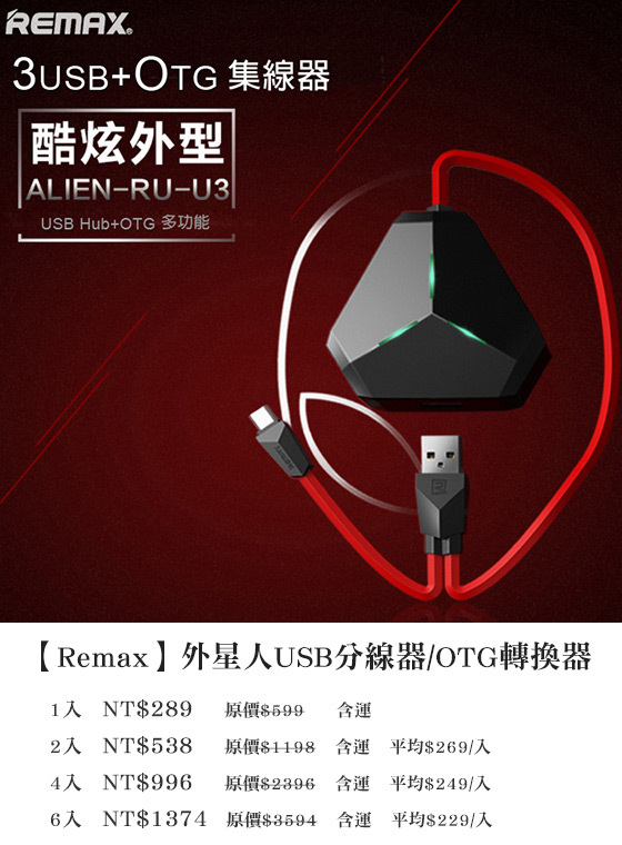 Remax-外星人USB分線器/OTG轉換器"藝人推薦