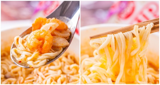 添加小蝦米、魚板等好料,搭配Q彈麵條,一杯吃不過癮,大呼還想再來一杯!